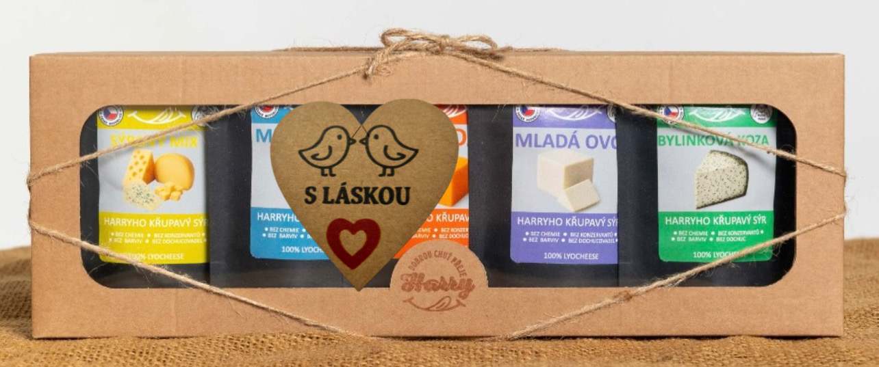 Dárková sada 5 druhů lyo sýrů MIX s láskouSkladem > 5 ks299 Kč/ ks267 Kč bez DPH