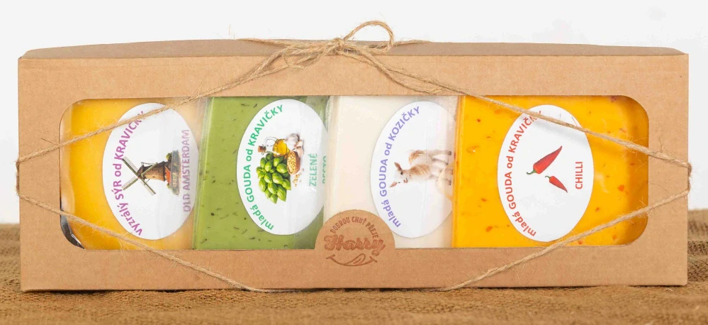 Dárkové balíčky holandských goud z Harryho sýrárny Bez chemie Dárková sada čerstvě krájených sýrů 4ks NAMIXUJ si Sám sýr dle vlastního výběru - Sestav si svůj Sýrový BOX