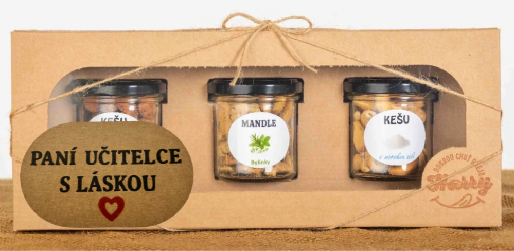 Dárková sada Kešu či Mandlí 3ks NAMIXUJ si SÁM paní učitelce s LÁSKOUSkladem > 5 ks349 Kč/ ks312 Kč bez DPH