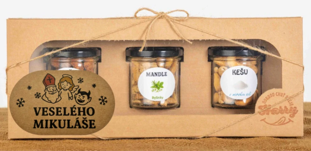 Dárková sada Kešu či Mandlí 3ks NAMIXUJ si SÁM Veselého MikulášeSkladem > 5 ks349 Kč/ ks312 Kč bez DPH