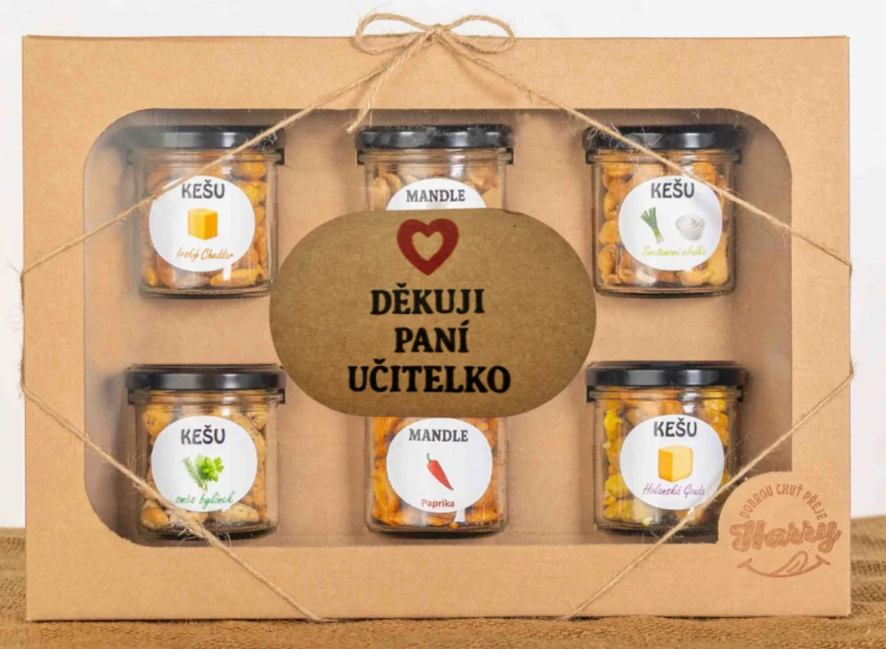Dárková sada Kešu či Mandlí 6ks NAMIXUJ si SÁM Děkuji paní učitelkoSkladem > 5 ks599 Kč/ ks535 Kč bez DPH