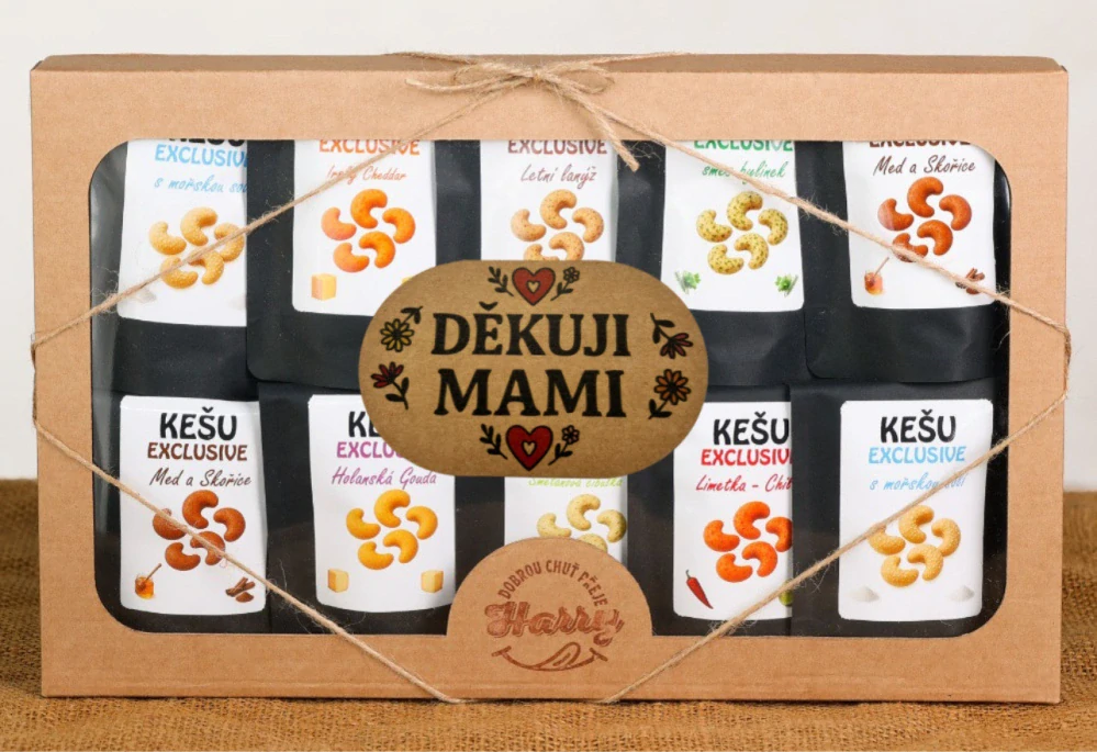 Dárková sada Kešu EXCLUSIVE mix 10 druhů TOP CHUŤ děkuji mamiSkladem > 5 ks499 Kč/ ks446 Kč bez DPH
