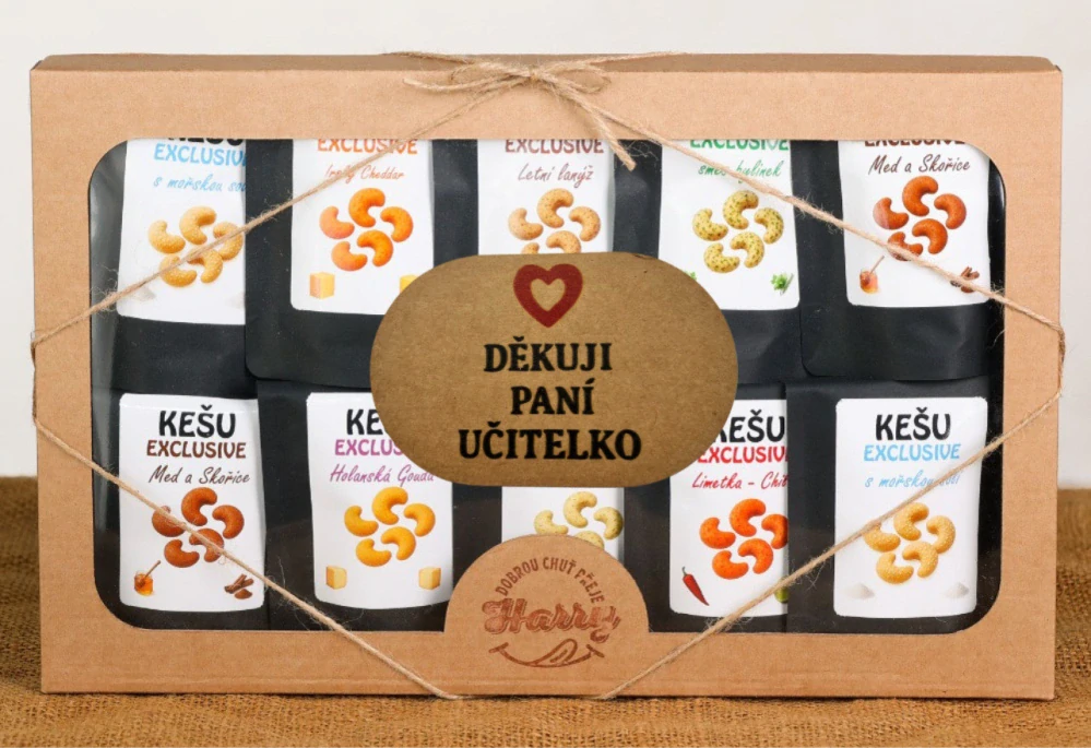 Dárková sada Kešu EXCLUSIVE mix 10 druhů TOP CHUŤ děkuji paní učitelkoSkladem > 5 ks499 Kč/ ks446 Kč bez DPH