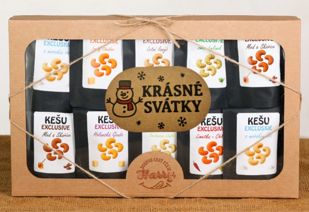 Dárková sada Kešu EXCLUSIVE mix 10 druhů TOP CHUŤ krásné svátky sněhulákSkladem > 5 ks499 Kč/ ks446 Kč bez DPH