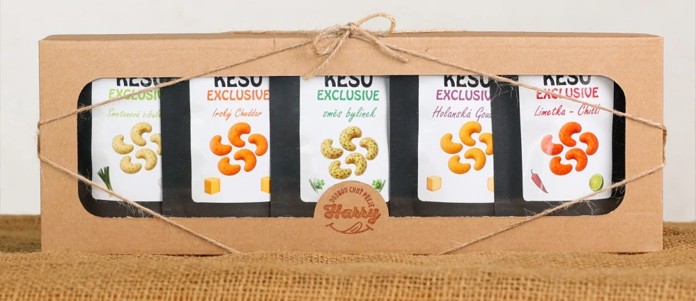 Dárková sada Kešu EXCLUSIVE mix 5 druhů slaných TOP CHUŤSkladem > 5 ks289 Kč/ ks258 Kč bez DPH
