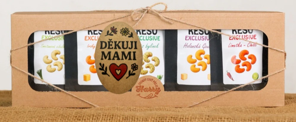 - Dárková sada Kešu EXCLUSIVE mix 5 druhů slaných TOP CHUŤ Děkuji mami
