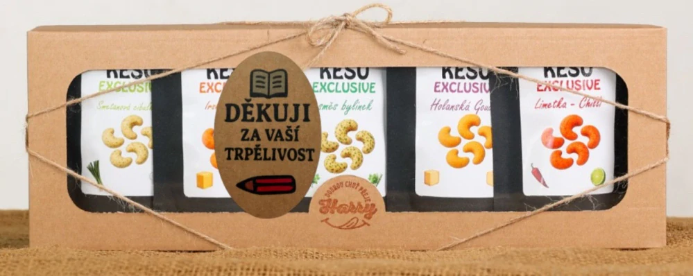 - Dárková sada Kešu EXCLUSIVE mix 5 druhů slaných TOP CHUŤ děkuji za Vaši trpělivost