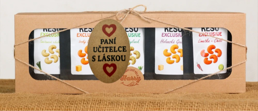 Dárková sada Kešu EXCLUSIVE mix 5 druhů slaných TOP CHUŤ paní učitelce s láskouSkladem > 5 ks299 Kč/ ks267 Kč bez DPH