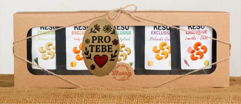 - Dárková sada Kešu EXCLUSIVE mix 5 druhů slaných TOP CHUŤ Pro Tebe