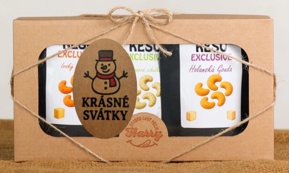 - Dárková sada Kešu EXCLUSIVE mix Letní lanýž + směs bylinek + Limetka Chilli Krásné svátky Sněhulák