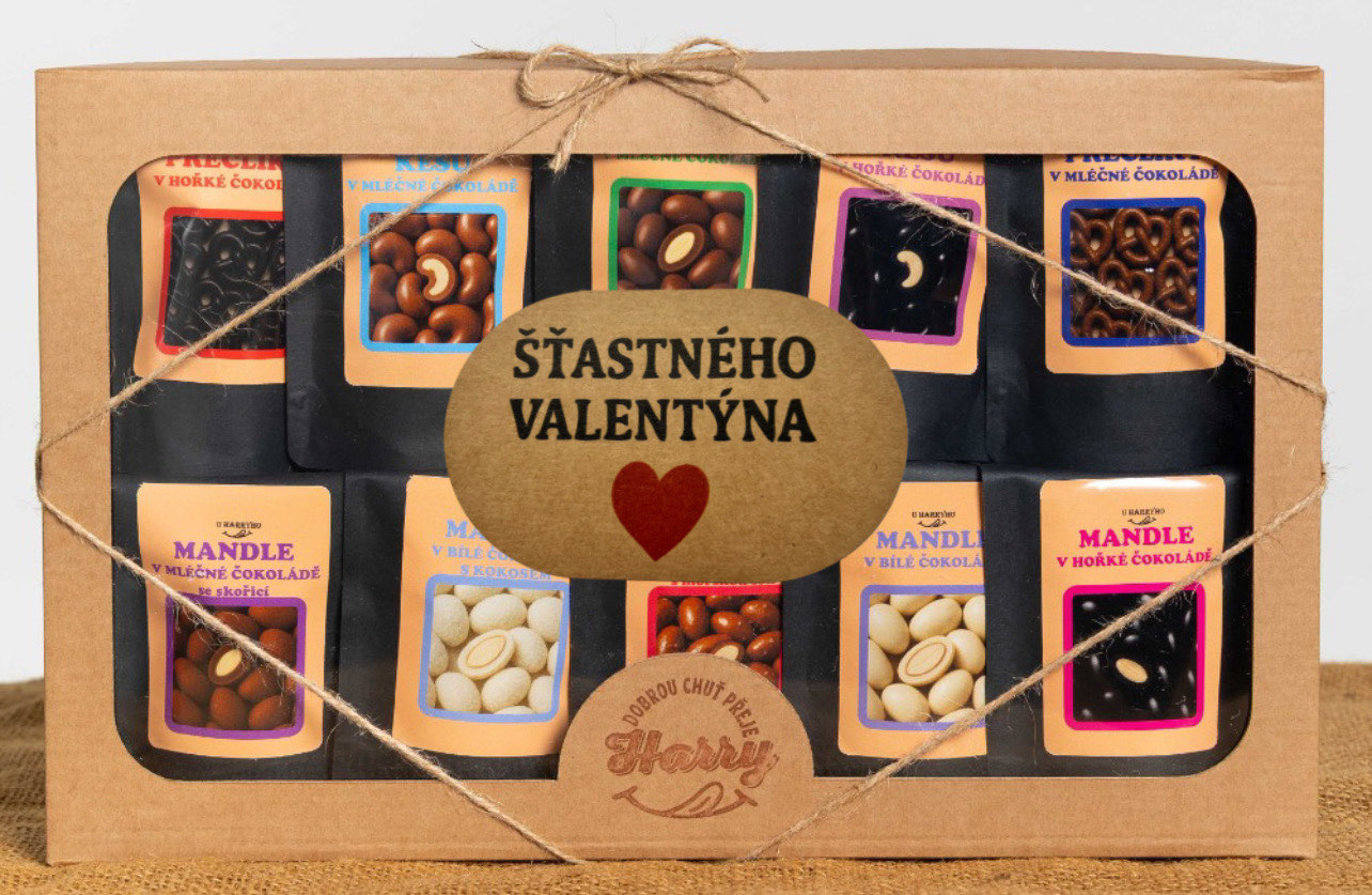 - Dárková sada křupavých preclíků a sladkých mandlí mix 10ks Šťastného Valentýna