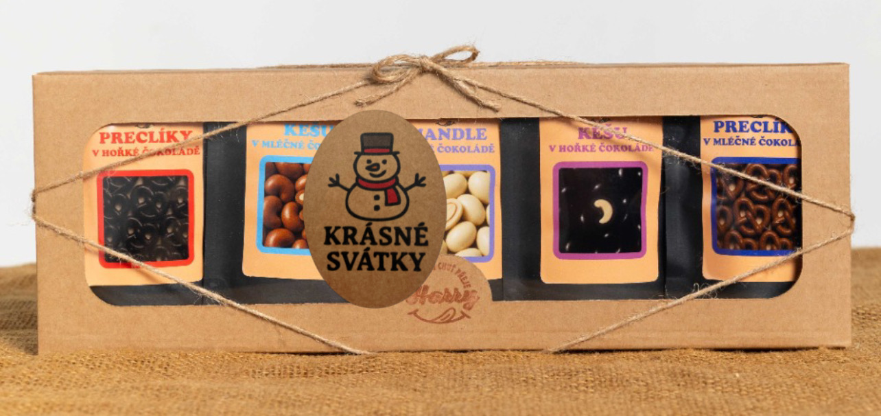 - Dárková sada křupavých preclíků a sladkých mandlí mix 5ks krásné svátky mikuláš