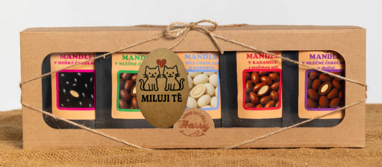 Dárková sada sladkých mandlí mix 5ks miluji TěSkladem > 5 ks249 Kč/ ks222 Kč bez DPH