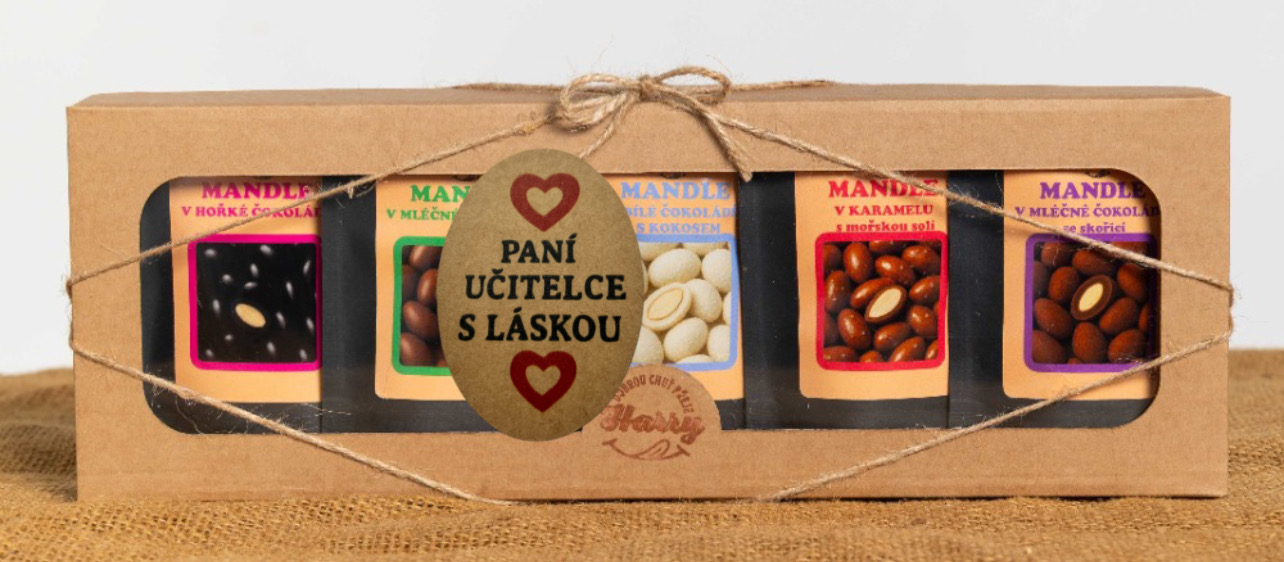 - Dárková sada sladkých mandlí mix 5ks paní učitelce s láskou