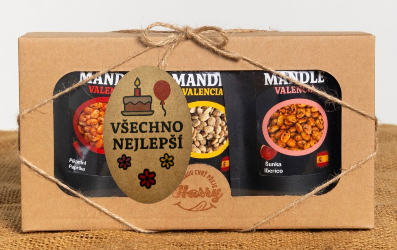 - Dárková sada Španělských mandlí mix citron+šunka Iberico+paprika všechno nejlepší