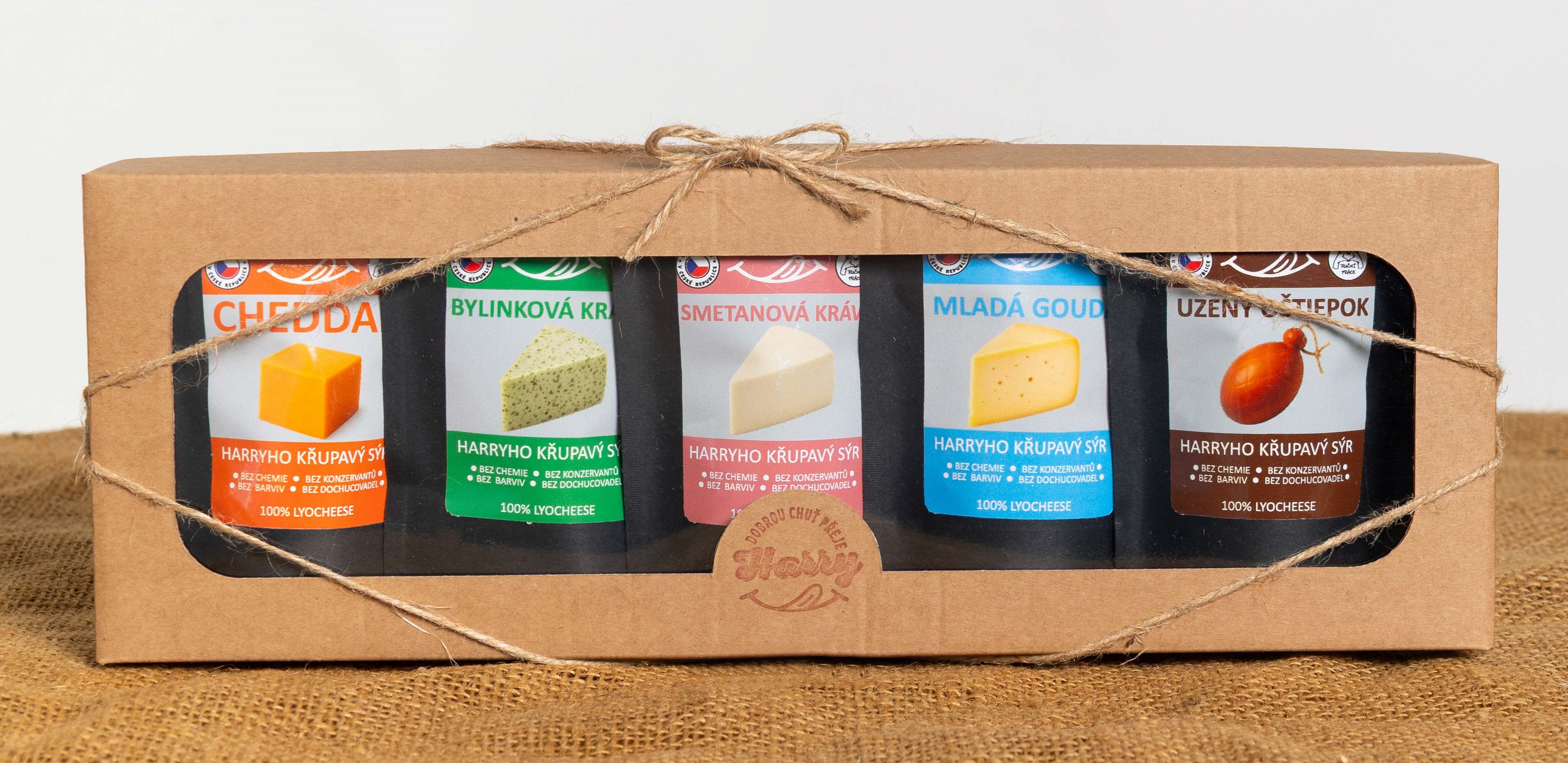 Křupavý sýr Dárková sada 5 druhů lyo sýrů od kravičkySkladem > 5 ks299 Kč/ ks267 Kč bez DPH