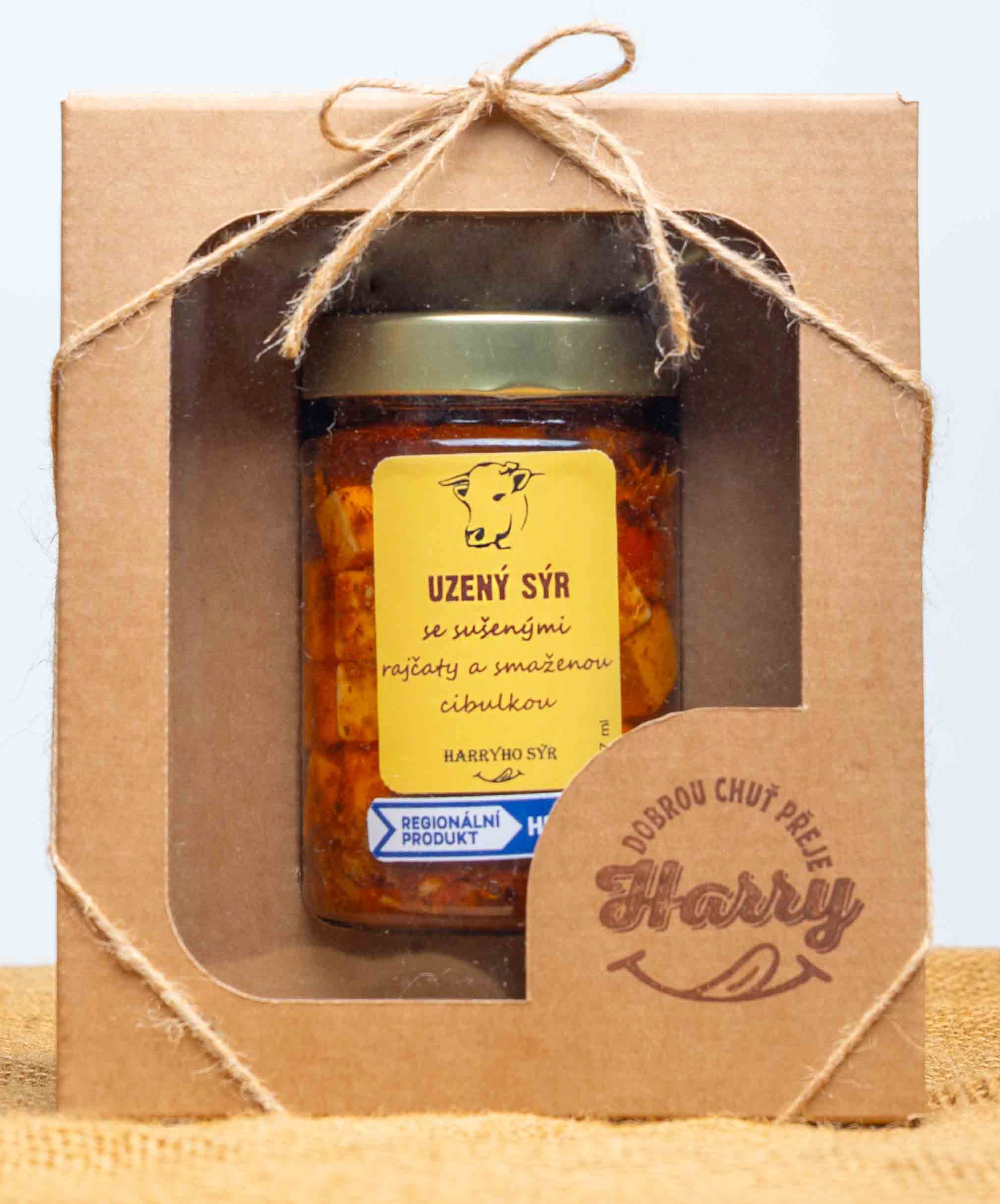 - DÁRKOVÉ BALENÍ Nakládaný Uzený sýr se Sušenými rajčaty a smaženou cibulkou 327 ml