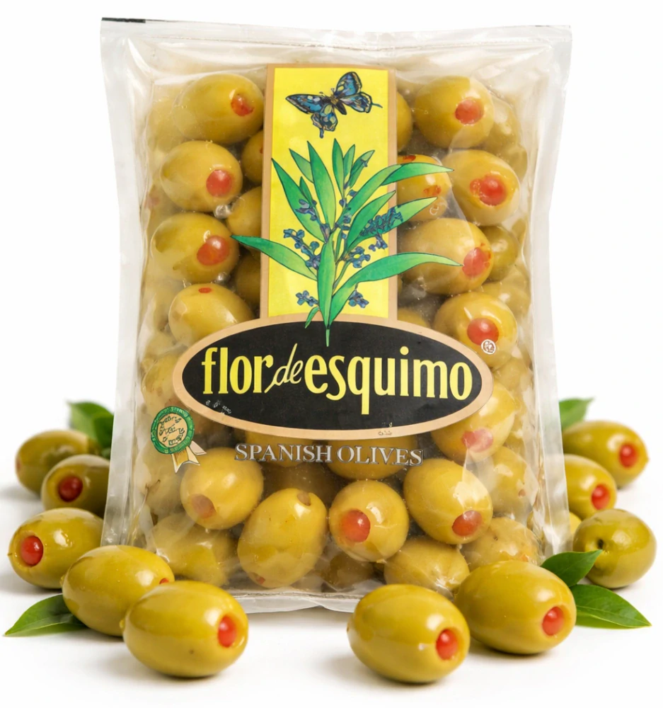FLOR de ESQUIMO - olivy zelené plněné paprikou 180 gSkladem > 5 ks22 Kč/ ks20 Kč bez DPH