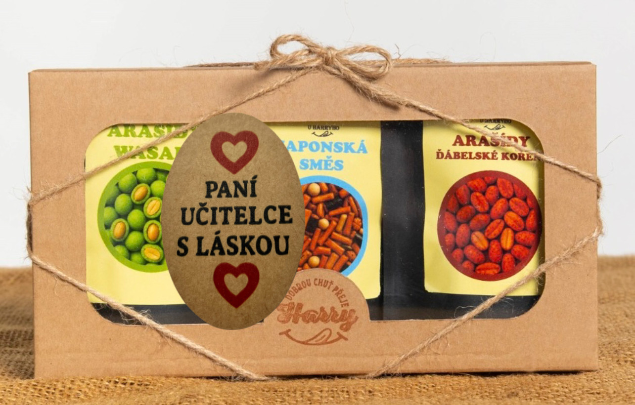 Křupavé arašídy Dárková sada 3 druhů paní učitelce s láskouSkladem > 5 ks139 Kč/ ks124 Kč bez DPH