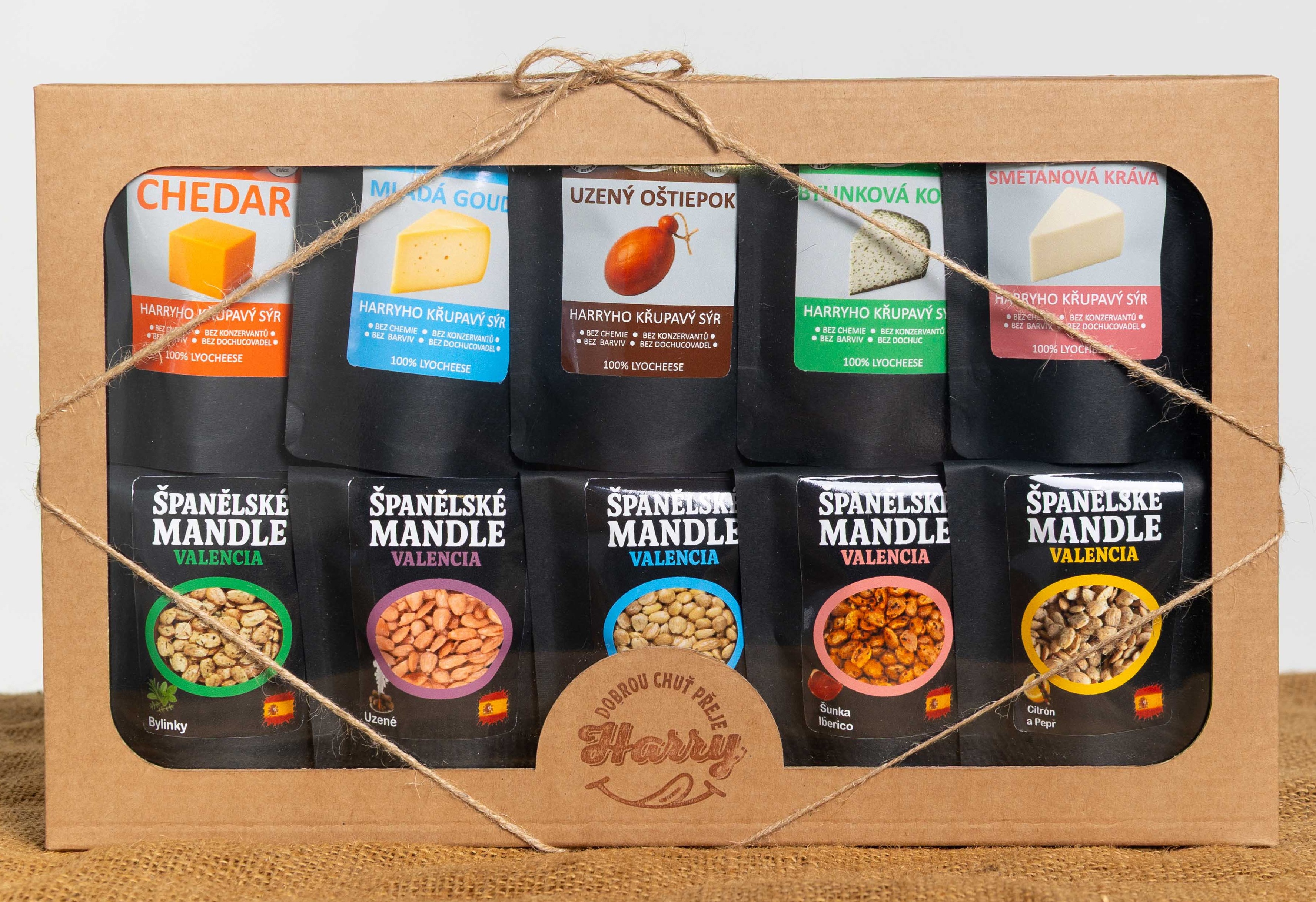 - Křupavý sýr a Španělské mandle Dárková sada 10 druhů