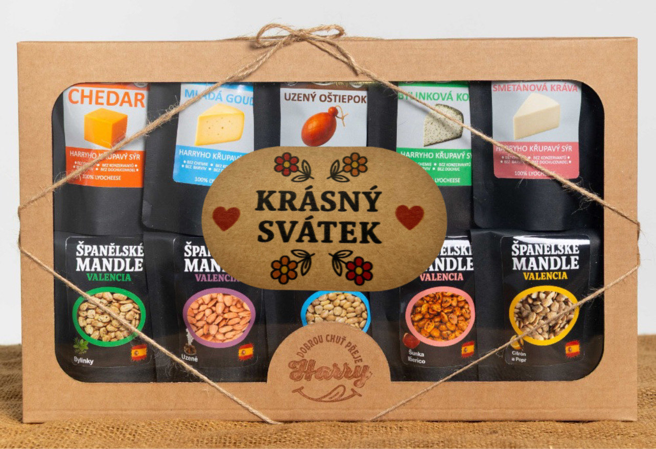 - Křupavý sýr a Španělské mandle Dárková sada 10 druhů krásný svátek