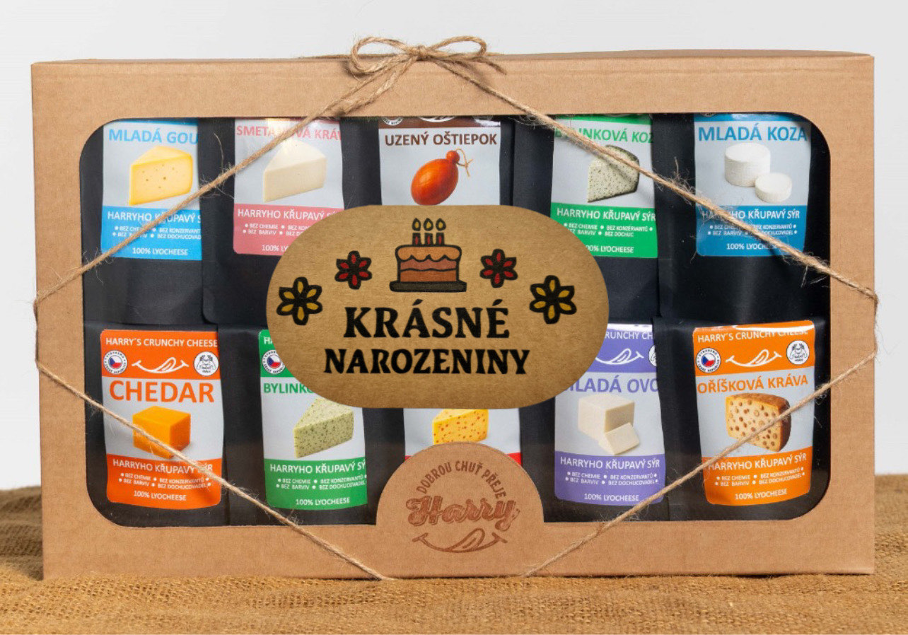 Křupavý sýr Dárková sada 10 druhů sýrů krásné narozeninySkladem > 5 ks499 Kč/ ks446 Kč bez DPH
