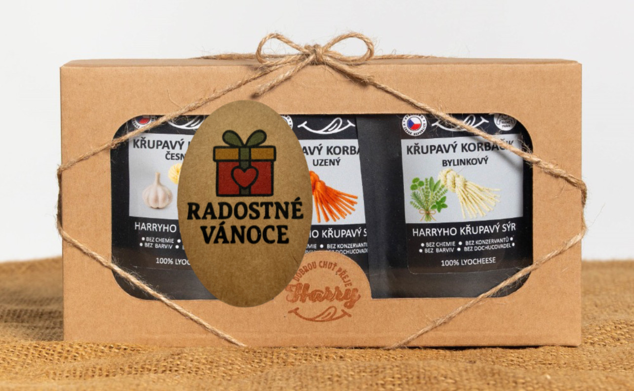 - Křupavý sýr Dárková sada 3 druhů lyo korbáčiků od Bači radostné vánoce dárek