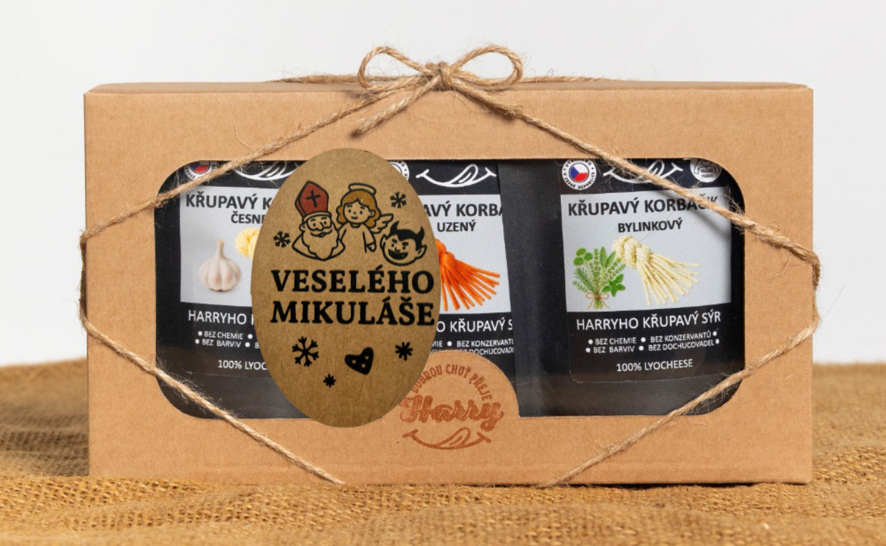 - Křupavý sýr Dárková sada 3 druhů lyo korbáčiků od Bači veselého mikuláše