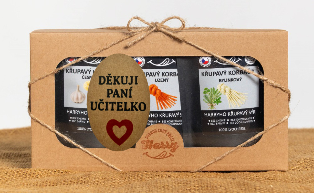 - Křupavý sýr Dárková sada 3 druhů lyo korbáčiků od Bači děkuji paní učitelko