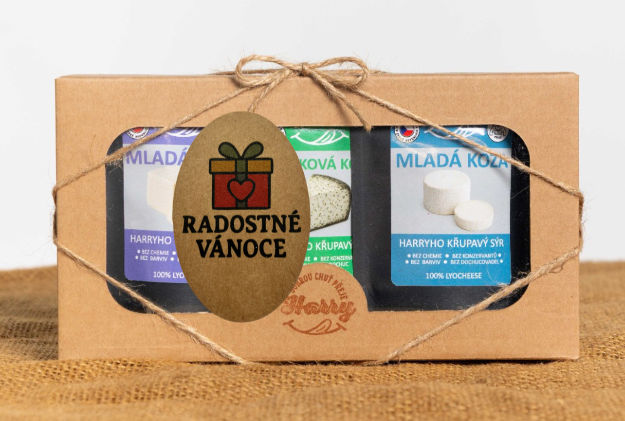 - Křupavý sýr Dárková sada 3 druhů lyo sýrů nejen od kozičky radostné vánoce dárek