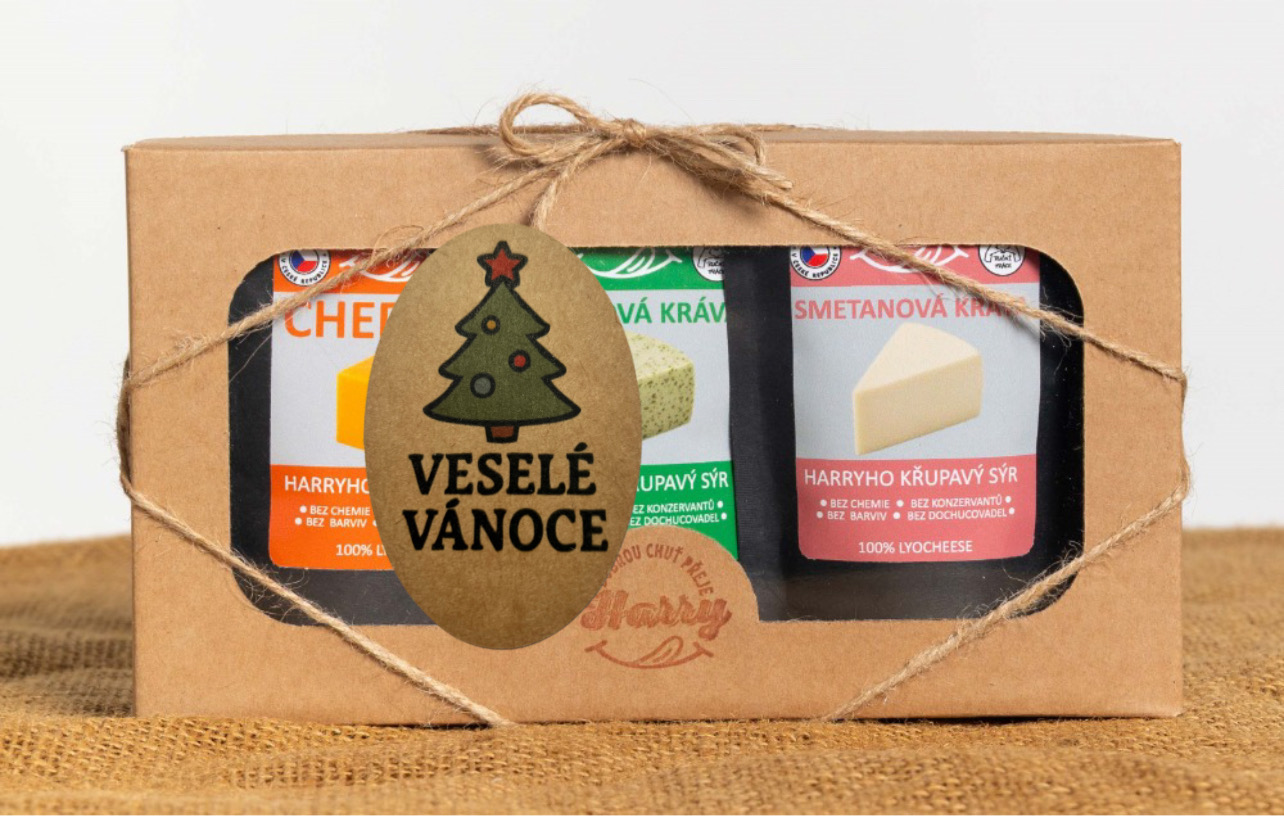 - Křupavý sýr Dárková sada 3 druhů lyo sýrů od kravičky veselé vánoce stromeček