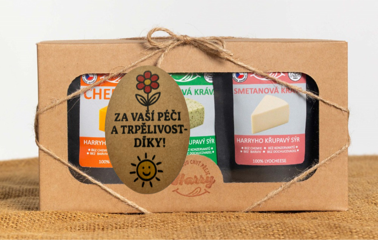 - Křupavý sýr Dárková sada 3 druhů lyo sýrů od kravičky za Vaši péči a trpělivost díky