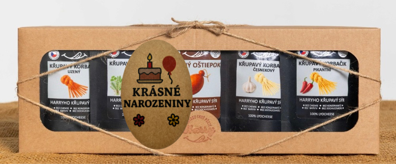 - Křupavý sýr Dárková sada 5 druhů lyo korbáčiků od Bači krásné narozeniny