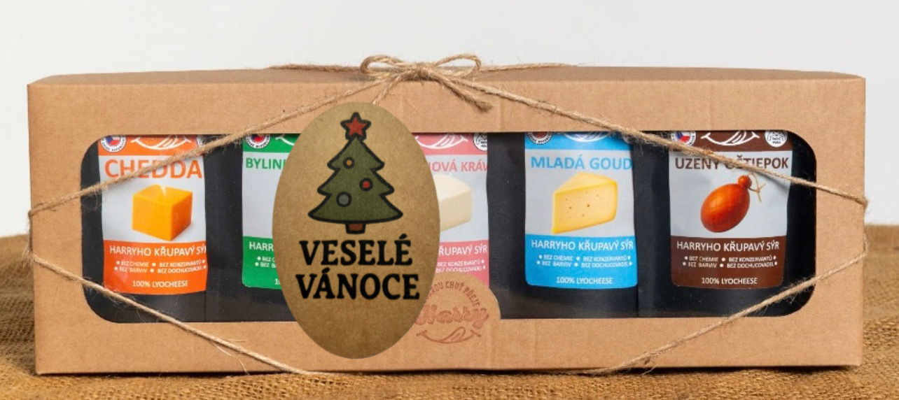 - Křupavý sýr Dárková sada 5 druhů lyo sýrů od kravičky veselé vánoce stromeček