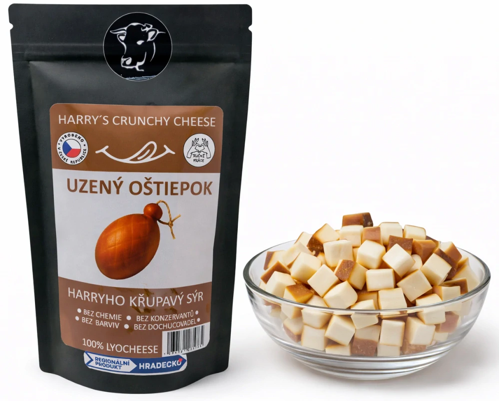 Křupavý sýr Uzený oštiepok 50gSkladem > 5 ks119 Kč/ ks106 Kč bez DPH