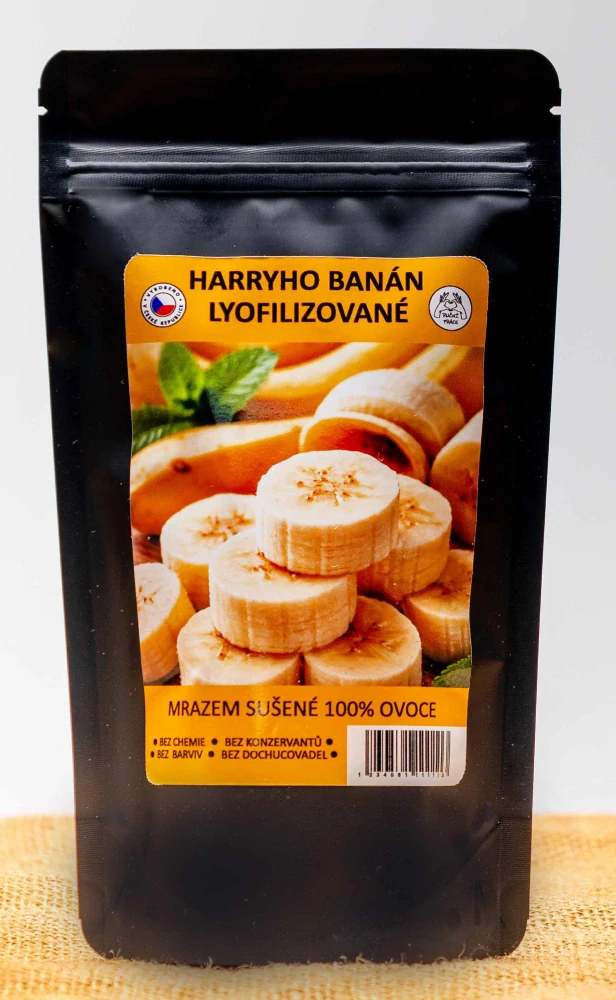Banánové plátky lyofilizované. Jinými slovy jde o ovoce vysušené mrazem. Takto vysušené ovoce neztrácí téměř nic ze svého tvaru, chuti a především nutričních hodnot, které zůstávají z 95 % stejné, jako u čerstvého ovoce. Tato zdravá pochutina by tak měla patřit do každé domácnosti. Děti i Vy si na ní pochutnáte a zároveň budete vědět, že jíte zdravě.