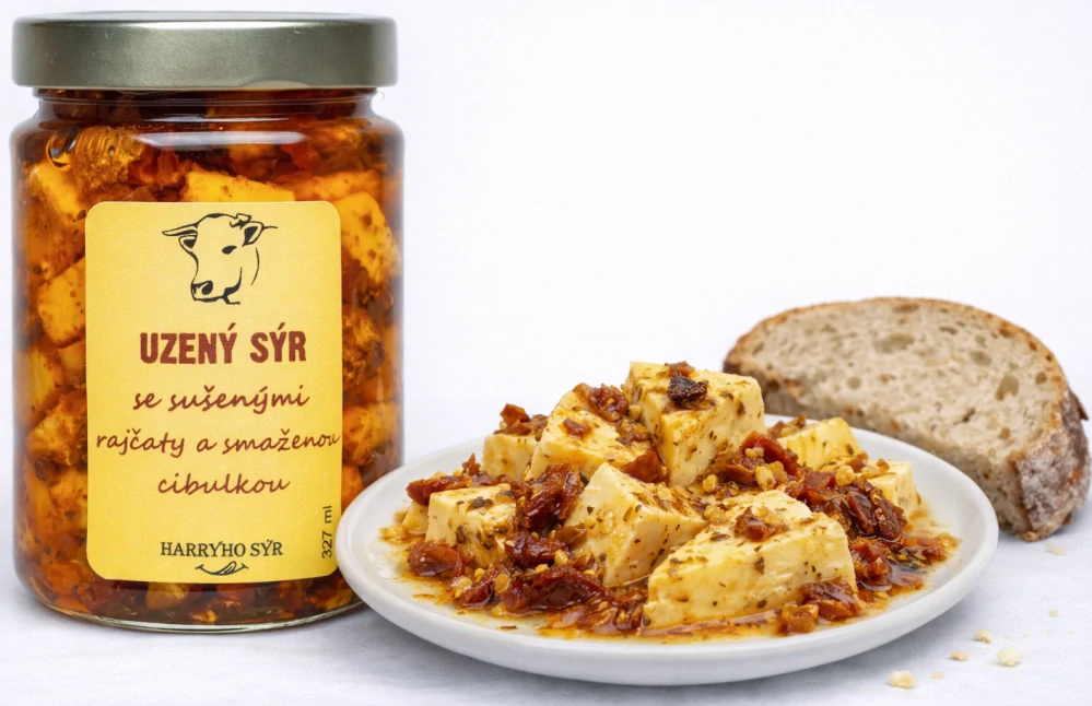 - u Harryho Nakládaný Uzený sýr se Sušenými rajčaty a smaženou cibulkou 327 ml