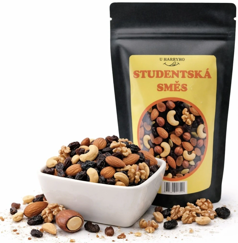 Hledáte rychlý zdroj energie a zdravé mlsání v jednom? Naše Studentská směs je vyvážený mix výběrových ořechů a sladkého sušeného ovoce, který vás podrží při studiu, v práci i na náročném výletě. Tato tradiční kombinace poskytuje tělu potřebné zdravé tuky, vlákninu a přirozenou energii. Zapomeňte na nezdravé chipsy – sáhněte po poctivé směsi mandlí, kešu, lískových ořechů a šťavnatých rozinek. Je to ideální "brainfood" pro zvýšení koncentrace i chutná svačinka do batohu, která zasytí a dodá vitamíny v té nejčistší podobě.