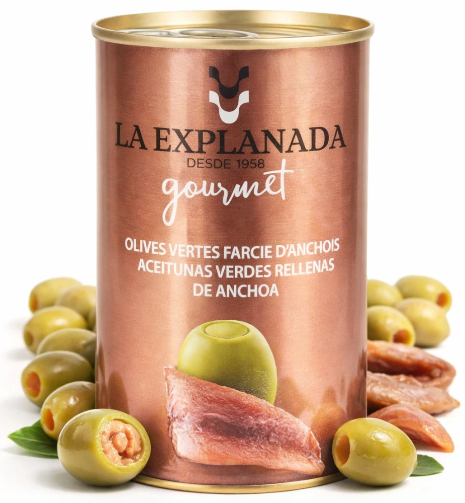 Dopřejte si autentickou chuť Španělska s zelenými olivami La Explanada plněnými ančovičkovou pastou. Tato varianta patří k absolutní klasice mezi španělskými tapas. Pečlivě vybrané olivy odrůdy Manzanilla vynikají svou masitou texturou, kterou skvěle doplňuje slaná a intenzivní chuť mořských sardelí (ančoviček). Jsou nepostradatelným doplňkem k vychlazenému pivu, suchému sherry nebo jako gurmánská ingredience do vašich oblíbených salátů a jednohubek.